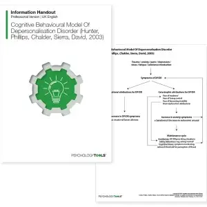 La depersonalizzazione è un'esperienza in cui un individuo avverte un senso di distacco da se stesso o estraniamento dalle proprie percezioni, azioni e sentimenti. Può essere accompagnato da derealizzazione, in cui il mondo esterno appare sconosciuto o meno reale. Entrambe possono essere esperienze transitorie, sono vissute fino al 70% della popolazione non clinica e sono spesso associate ad affaticamento, stress o uso di farmaci. Il disturbo di depersonalizzazione (DPD) viene diagnosticato quando i sintomi di depersonalizzazione e derealizzazione sono vissuti in modo cronico e causano disagio e compromissione significativi. Può verificarsi in assenza di altre condizioni o come condizione di comorbidità. IL Modello cognitivo comportamentale di depersonalizzazione la dispensa informativa riproduce un modello cognitivo di DPD proposto da Hunter, Phillips, Chalder, Sierra,