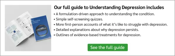 La CBT propone che il motivo per cui la depressione di alcune persone non migliora da sola è perché stanno lottando con un misto di interpretazione delle cose in modi inutili e di azione controproducente. C'è molto da dire sul motivo per cui la depressione potrebbe non migliorare da sola, ma alcuni dei motivi più importanti hanno a che fare con: