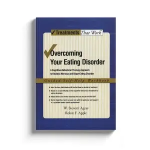 La terapia cognitivo comportamentale (CBT) è un trattamento efficace per i disturbi alimentari tra cui la bulimia nervosa e il disturbo da alimentazione incontrollata. È raccomandato dall'American Psychiatric Association (APA) e dal National Institute for Health and Care Excellence (NICE) del Regno Unito. Superare i disturbi alimentari è scritto da W. Stewart Agras (professore emerito di psichiatria presso la Stanford University School of Medicine) e Robin F. Apple (psicologo clinico e precedentemente professore clinico associato presso la Stanford University) e fornisce ai terapisti tutti gli strumenti di cui hanno bisogno per fornire un trattamento psicologico efficace e basato sull'evidenza per la bulimia nervosa e il disturbo da alimentazione incontrollata. Parte del Trattamenti che funzionano™ serie, fornisce istruzioni passo passo per insegnare ai clienti le competenze per migliorare le loro abitudini alimentari e superare le difficoltà legate al cibo.