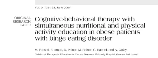 Nel 2004 Fossati e colleghi hanno pubblicato uno studio che confrontava un approccio cognitivo comportamentale tradizionale per il trattamento dei disturbi da alimentazione incontrollata con l'aggiunta di un programma nutrizionale e di attività fisica [75].